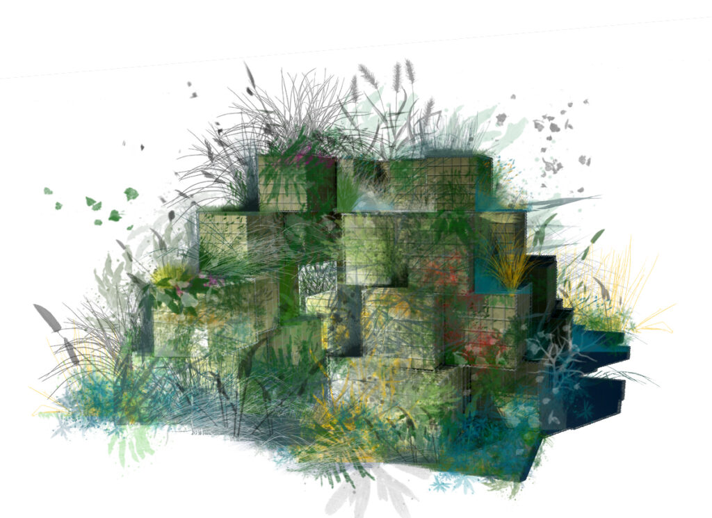 Le dessin et le jardin ne sont alors pas figés, la reprise plus aisée de certains végétaux, la sénescence rapide d’autres ou l’invitation de végétaux imprévus composent un jardin et une oeuvre qui évolue avant tout d’elle-même.