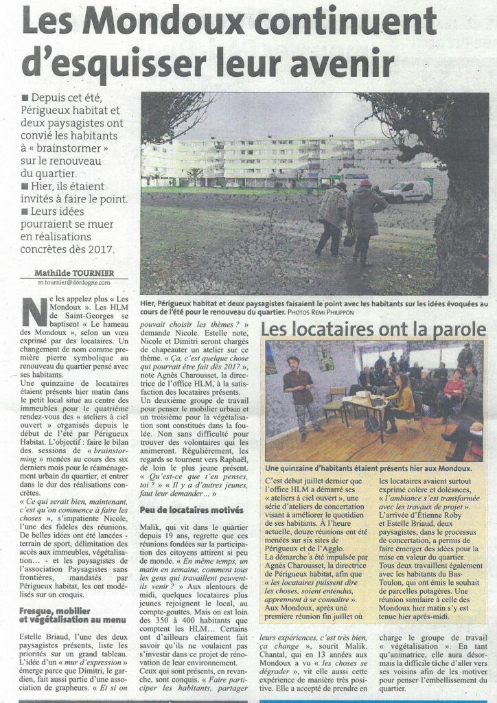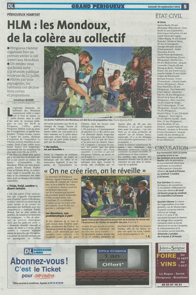 Aménagement Périgueux – Sud Ouest, Dordogne Libre – 2016